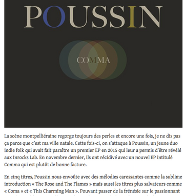 Lauréat du dispositif de repérage des Transes Cévenoles 2015, POUSSIN est né il y a 10 ans de la rencontre de quatre musiciens issus de formations emblématiques de la scène montpelliéraine : Volin, Scotch & Sofa, et The Chase.